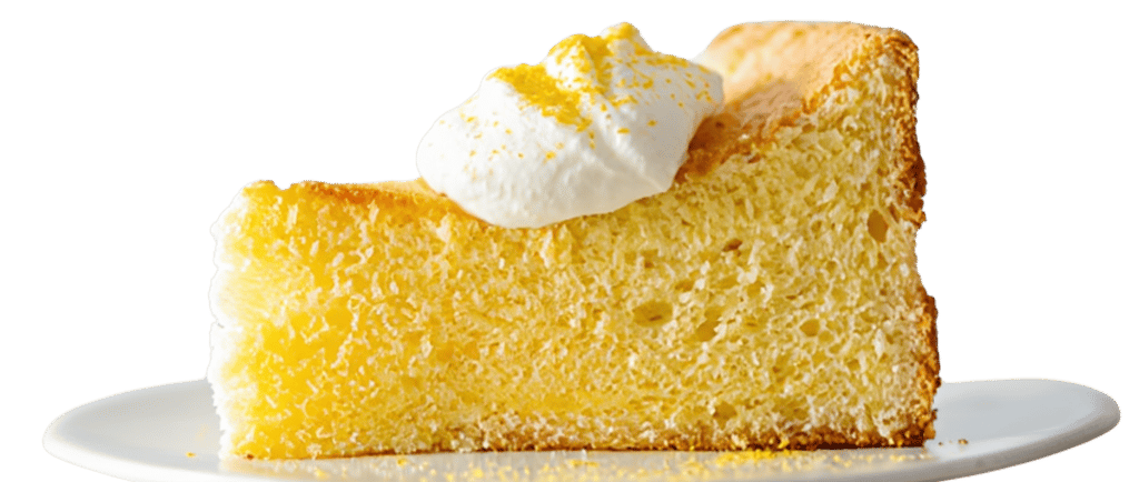 Bolo leve e areado, obtido através da técnica chiffon que combina claras batidas e emulsão de óleo. Preparado com sumo e raspas de limão, apresentando textura fofa, aroma cítrico e sabor fresco. Estrutura ligeira, ideal para quem procura um bolo pouco denso e de doçura equilibrada. Pode ser finalizado com cobertura leve